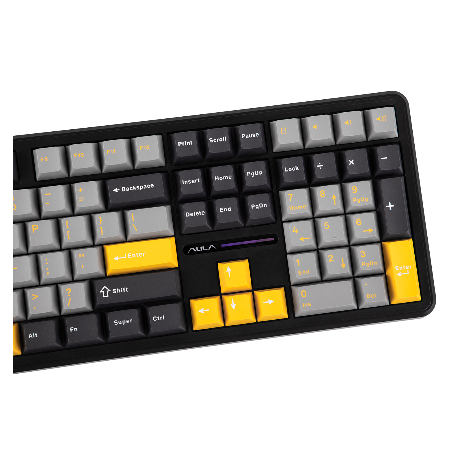 Meet the 100% full size variation of the AULA F75, the F108 Mechanical keyboard that offers the same creamy sound and unparalleled performance as F75 but in upgraded full-size layout. The 108 anti-ghosting keys deliver accuracy and greater possibilities in configuration and controlling, ideal for multitasking and fast response in gaming and office. While the 2-stage kickstand, low front height and cherry profile keycaps rid you of finger fatigue and wrist strain for a pain-free day of work.