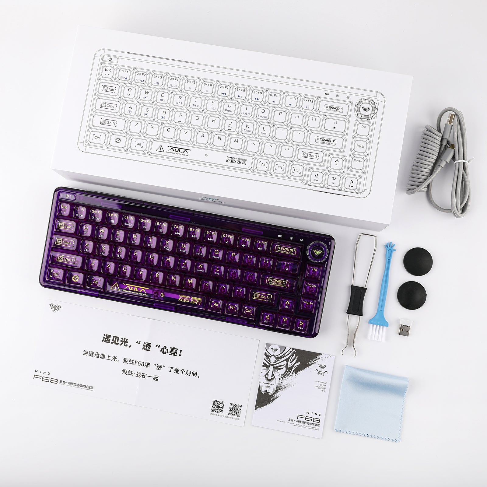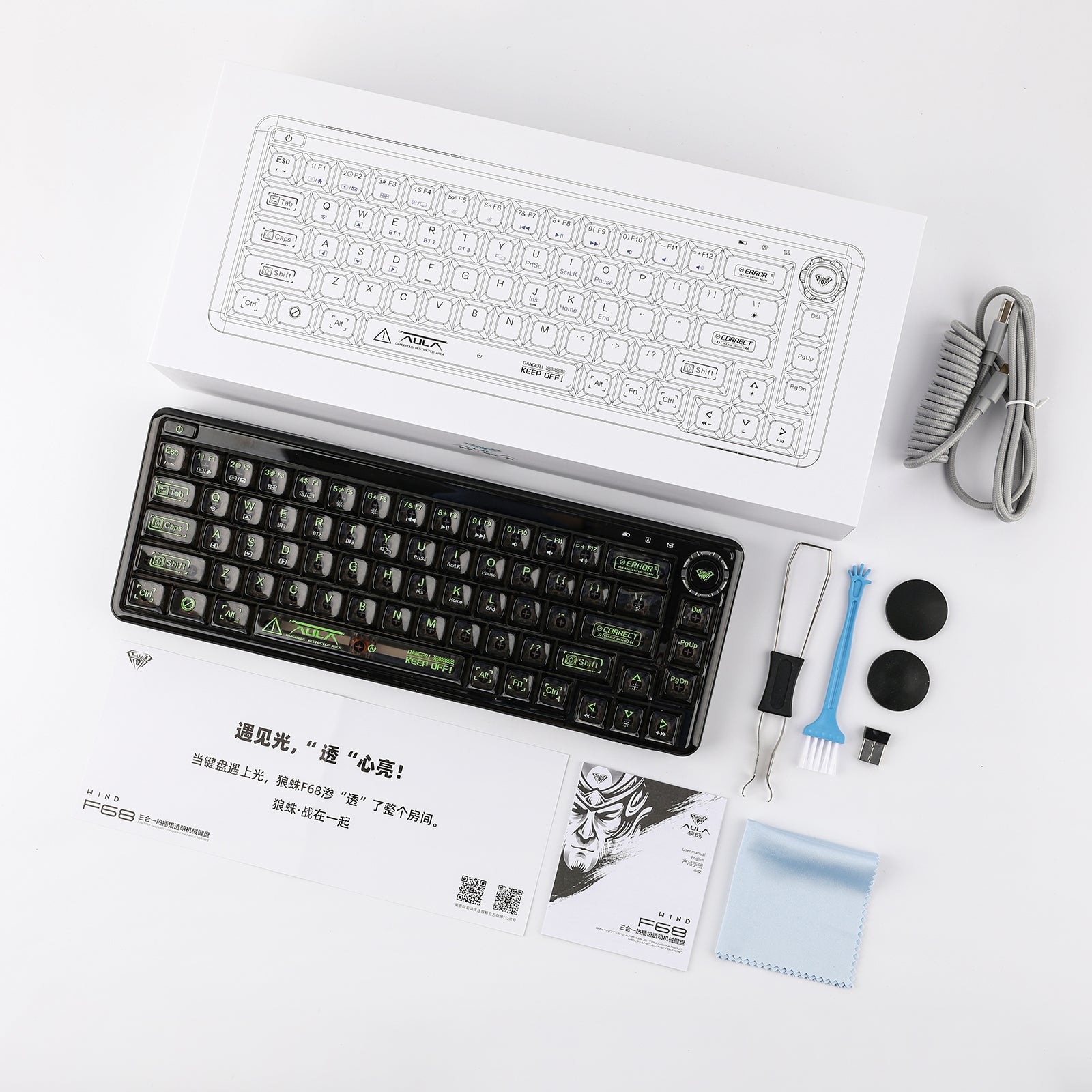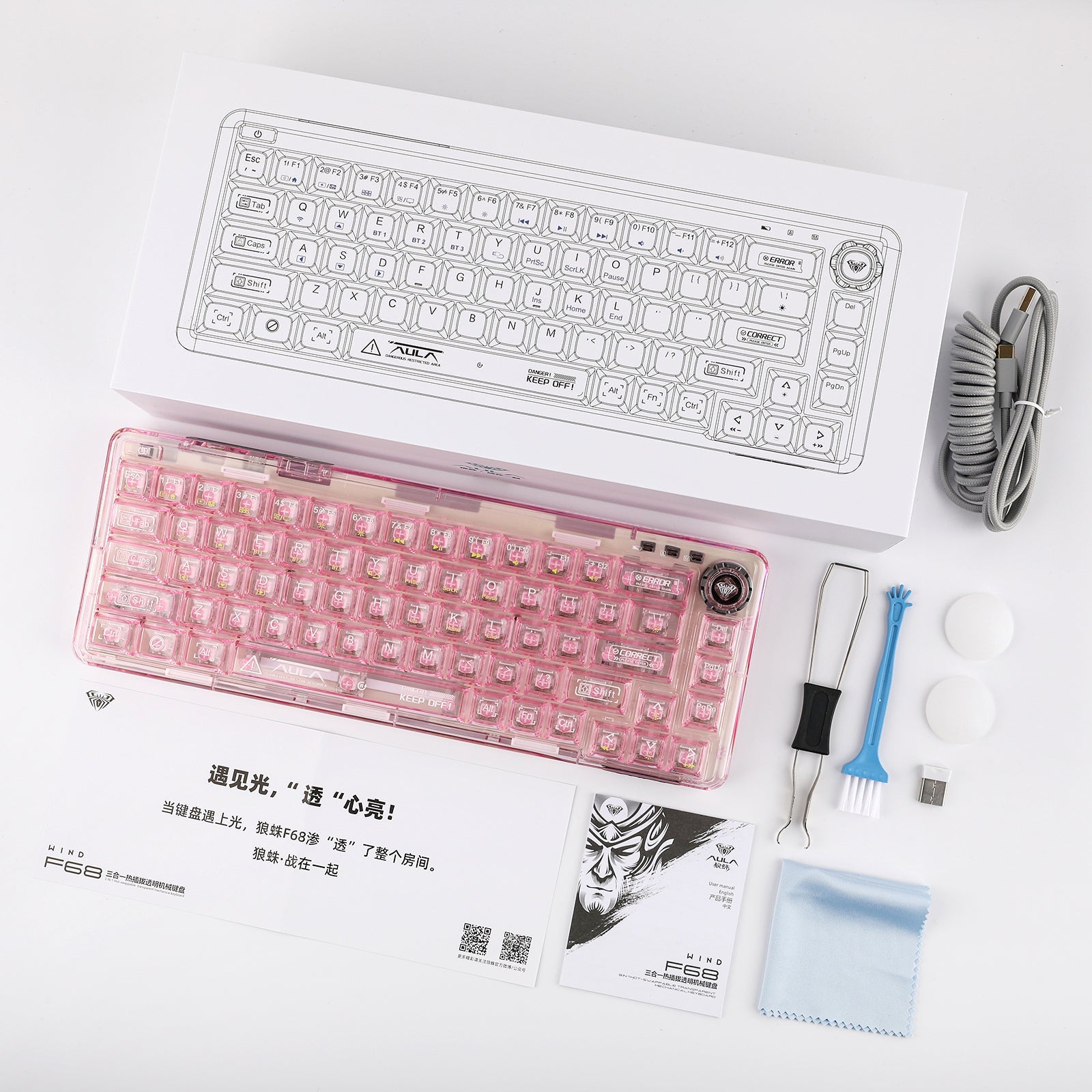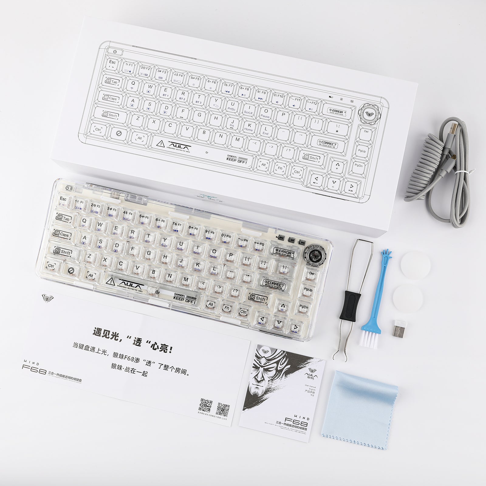Enjoy the flexibility of connectivity with the F68’s Bluetooth 5.0, ultra-fast stable 2.4GHz wireless, and Type-C wired modes. This triple-mode functionality ensures reliable connection across various devices and platforms.