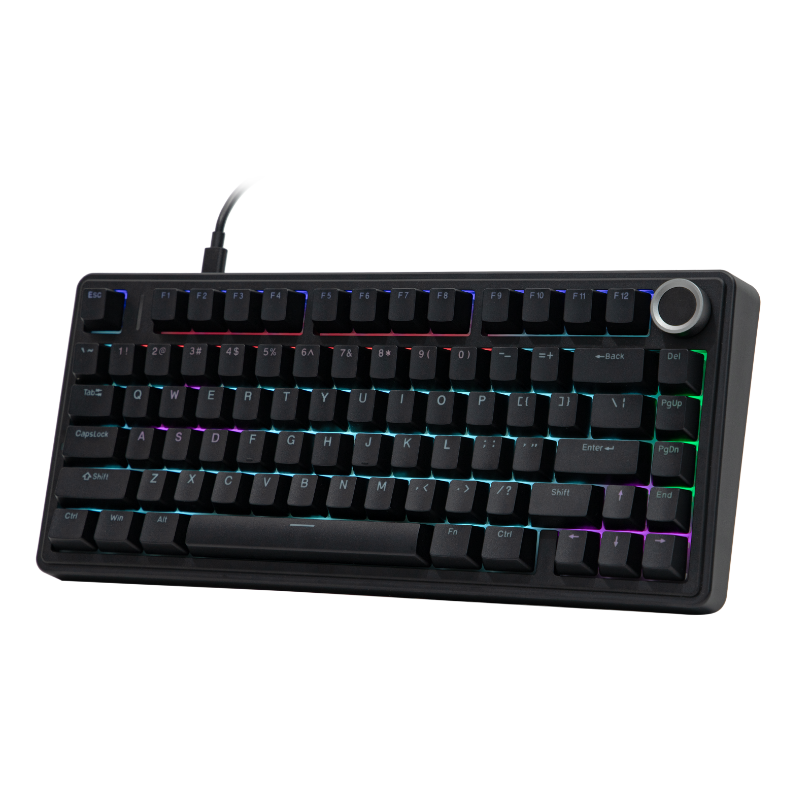 The F75 Wired Mechanical Keyboard features a compact 80-key, 75% layout that maximizes your desk space while keeping all essential keys within easy reach. The added knob offers quick and convenient control for volume adjustments or media playback, allowing for a seamless user experience whether you're typing, gaming, or listening to music.