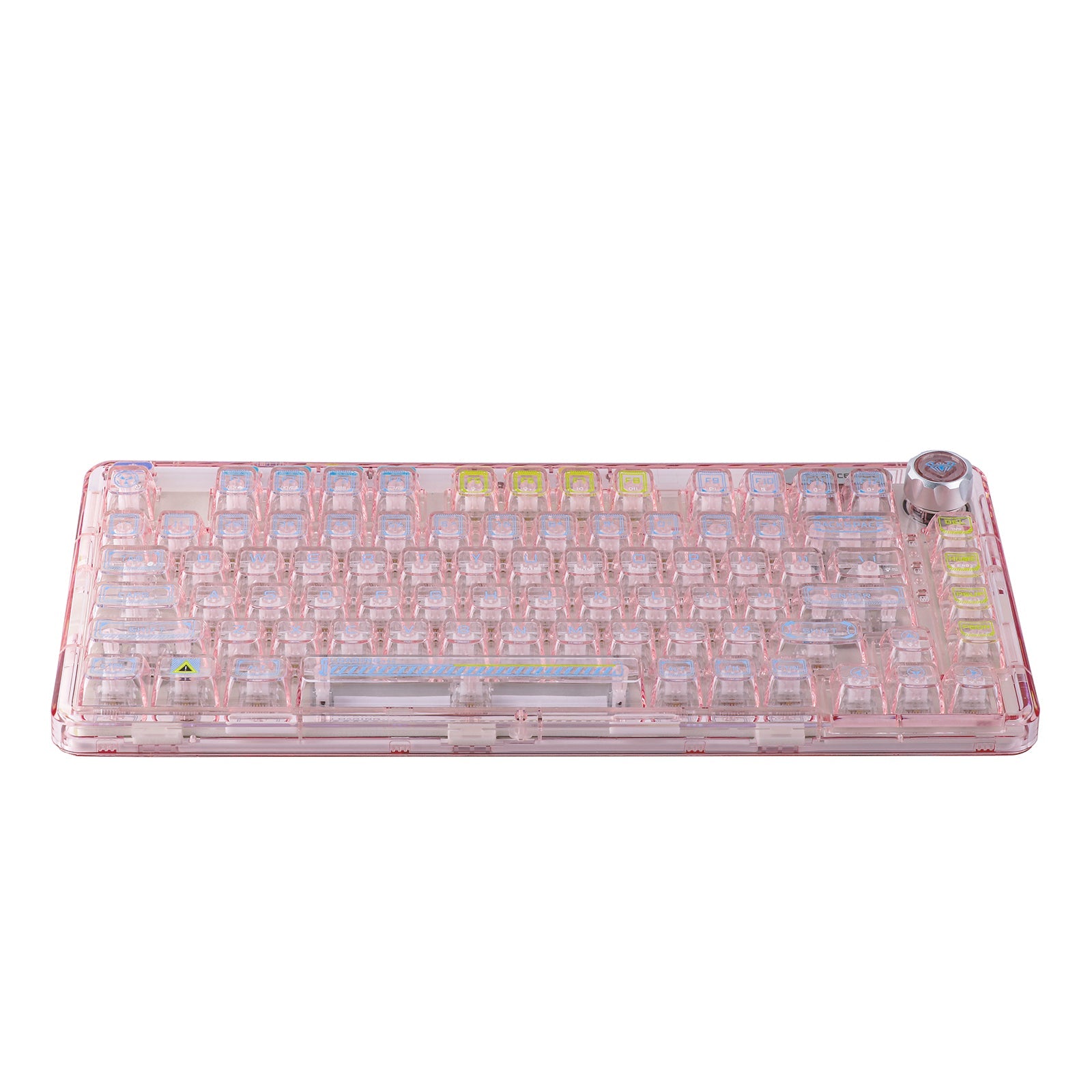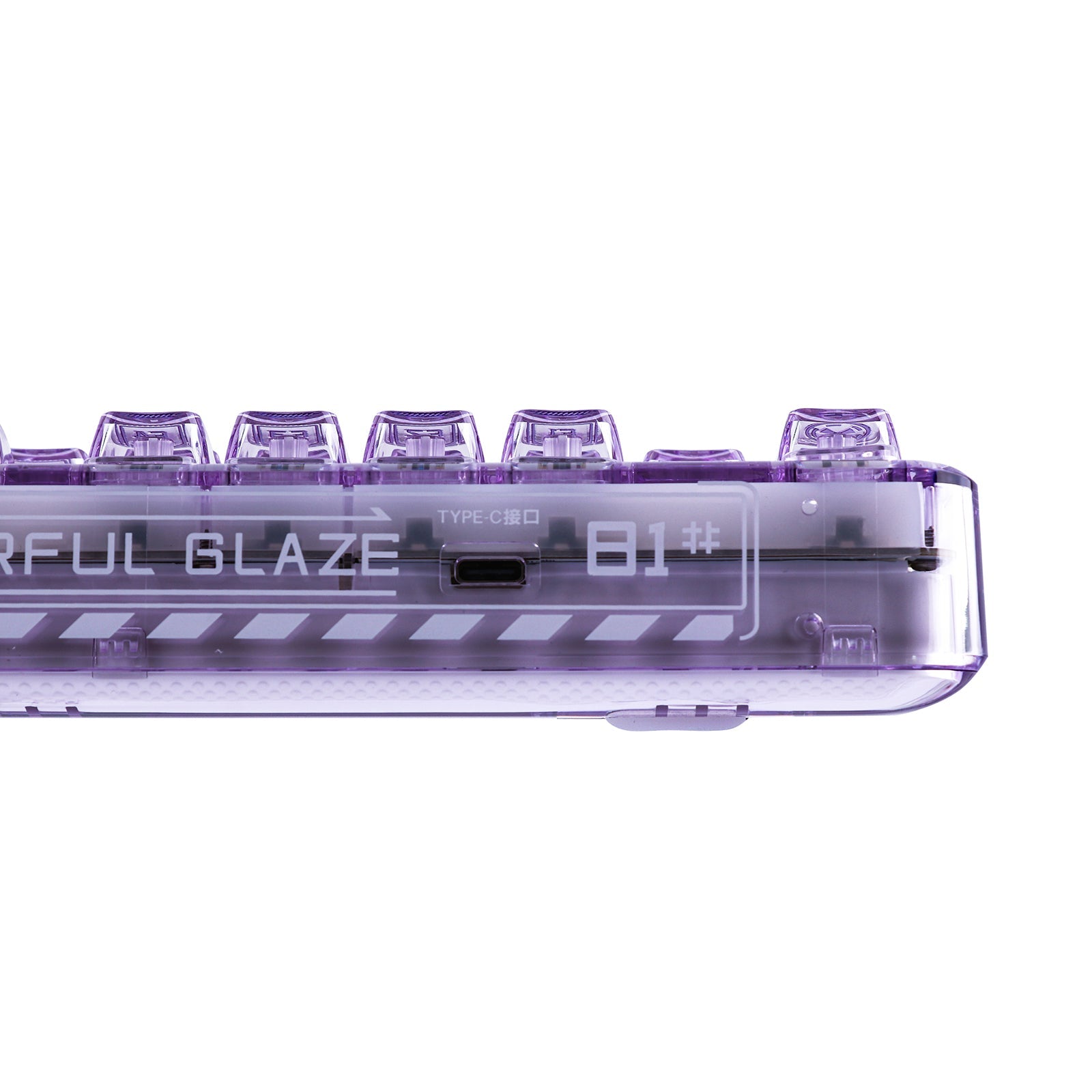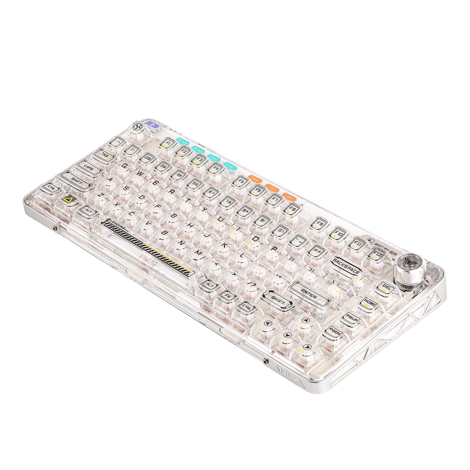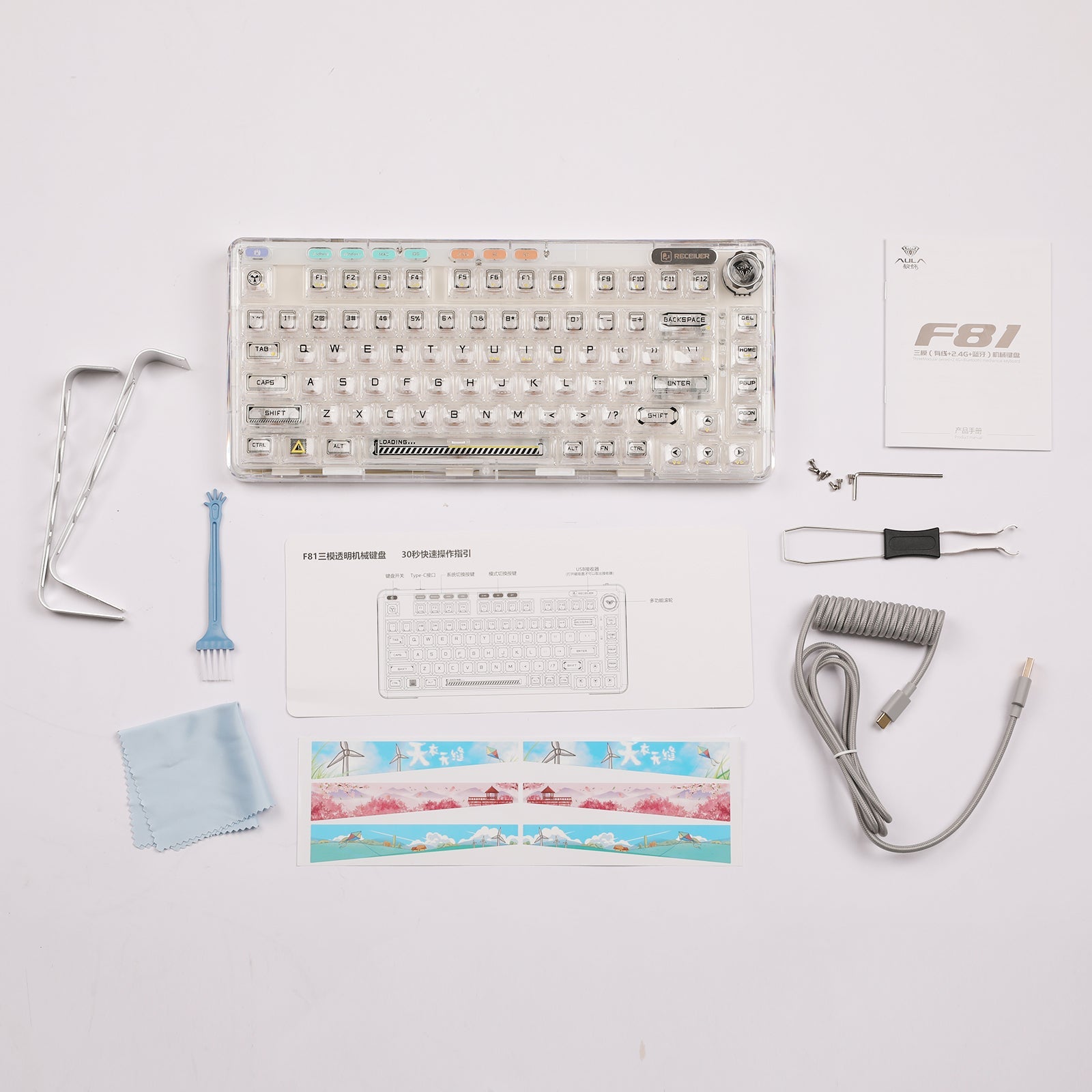 Designed with a transparent acrylic case, the F81 showcases its internal mechanics, creating a visually stunning effect. The GDA profile keycaps are made from PC material, enhancing the RGB lighting effects beneath. The keycap legends are durably crafted using 3D printing technology, ensuring longevity and resistance to wear.