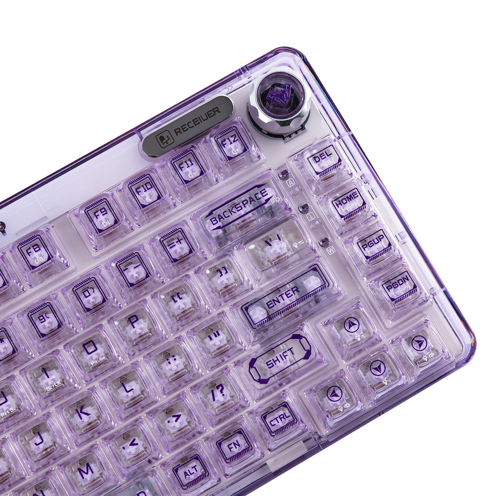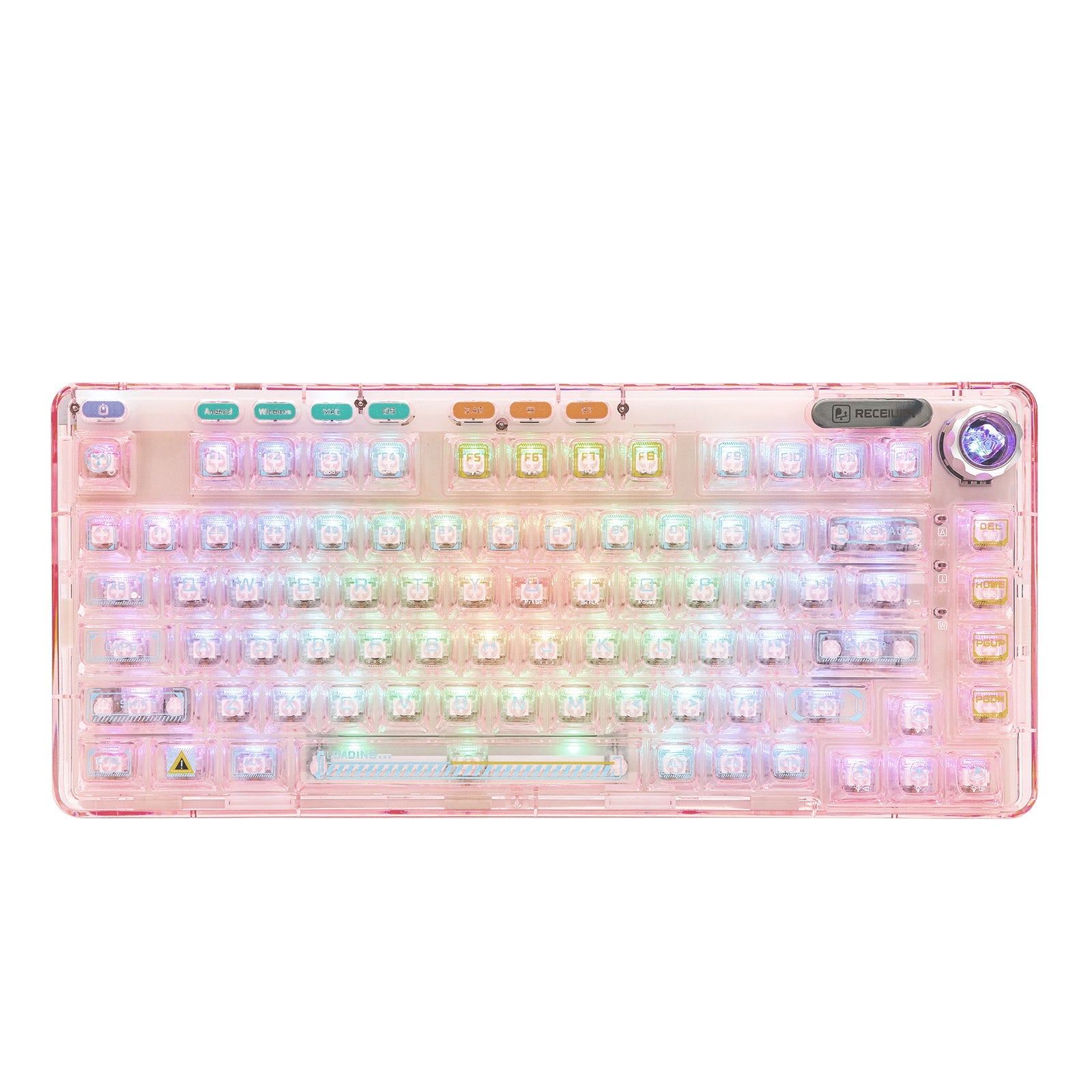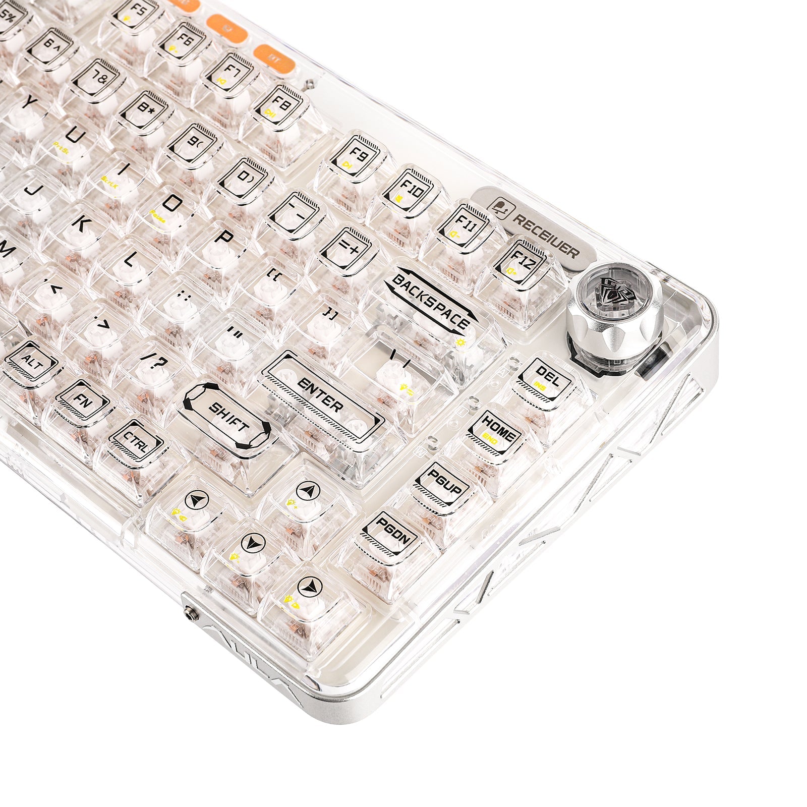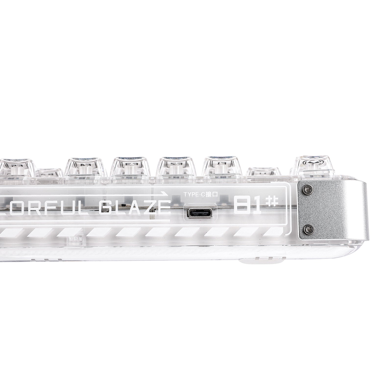Designed with a transparent acrylic case, the F81 showcases its internal mechanics, creating a visually stunning effect. The GDA profile keycaps are made from PC material, enhancing the RGB lighting effects beneath. The keycap legends are durably crafted using 3D printing technology, ensuring longevity and resistance to wear.